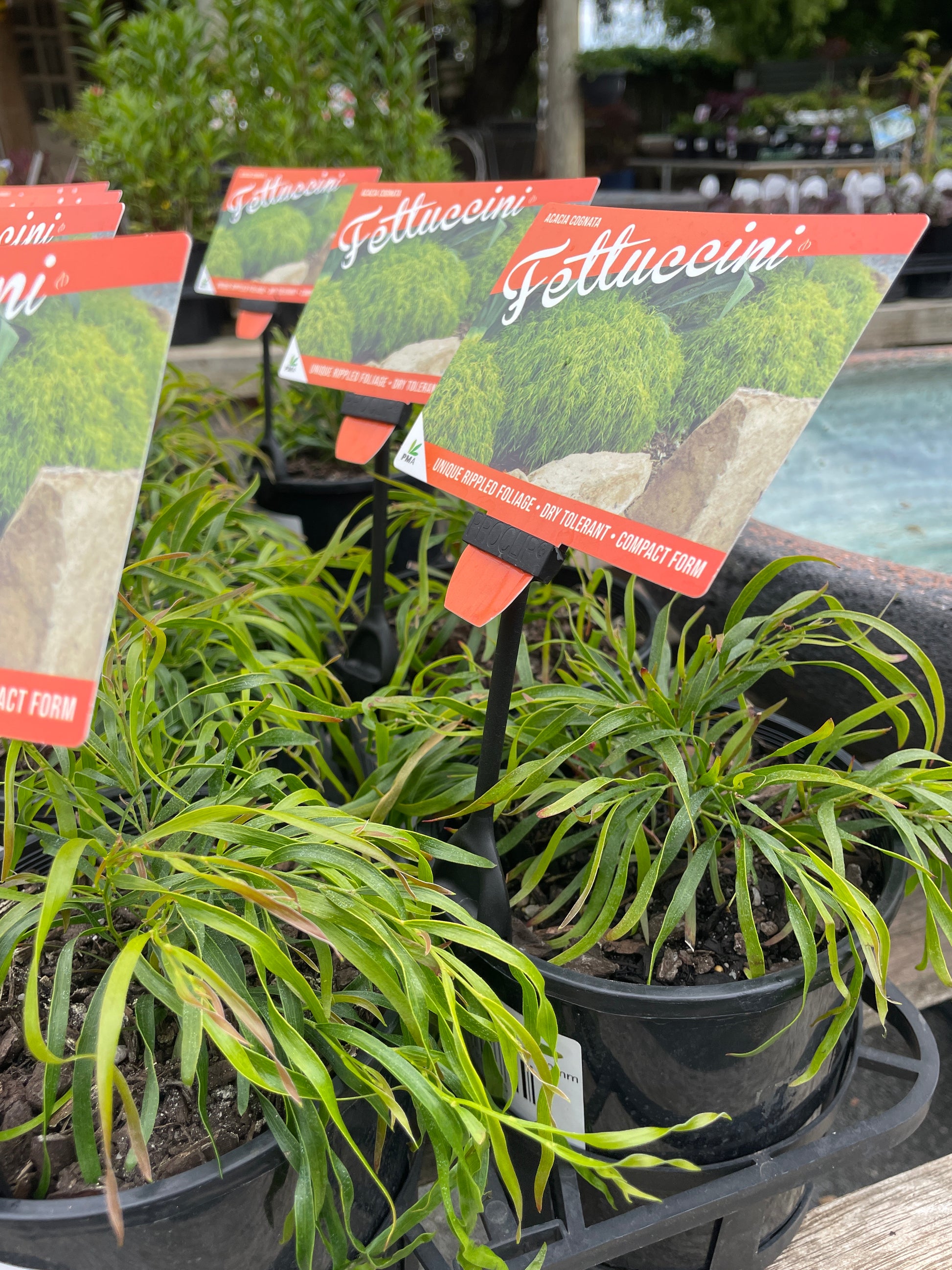 Acacia cognata 'Fettuccini' (River Wattle) is a graceful Australian native with distinctive narrow, weeping foliage that resembles fettuccini pasta. This compact wattle produces masses of fragrant pale yellow flowers in spring, attracting native birds and beneficial insects to your garden.