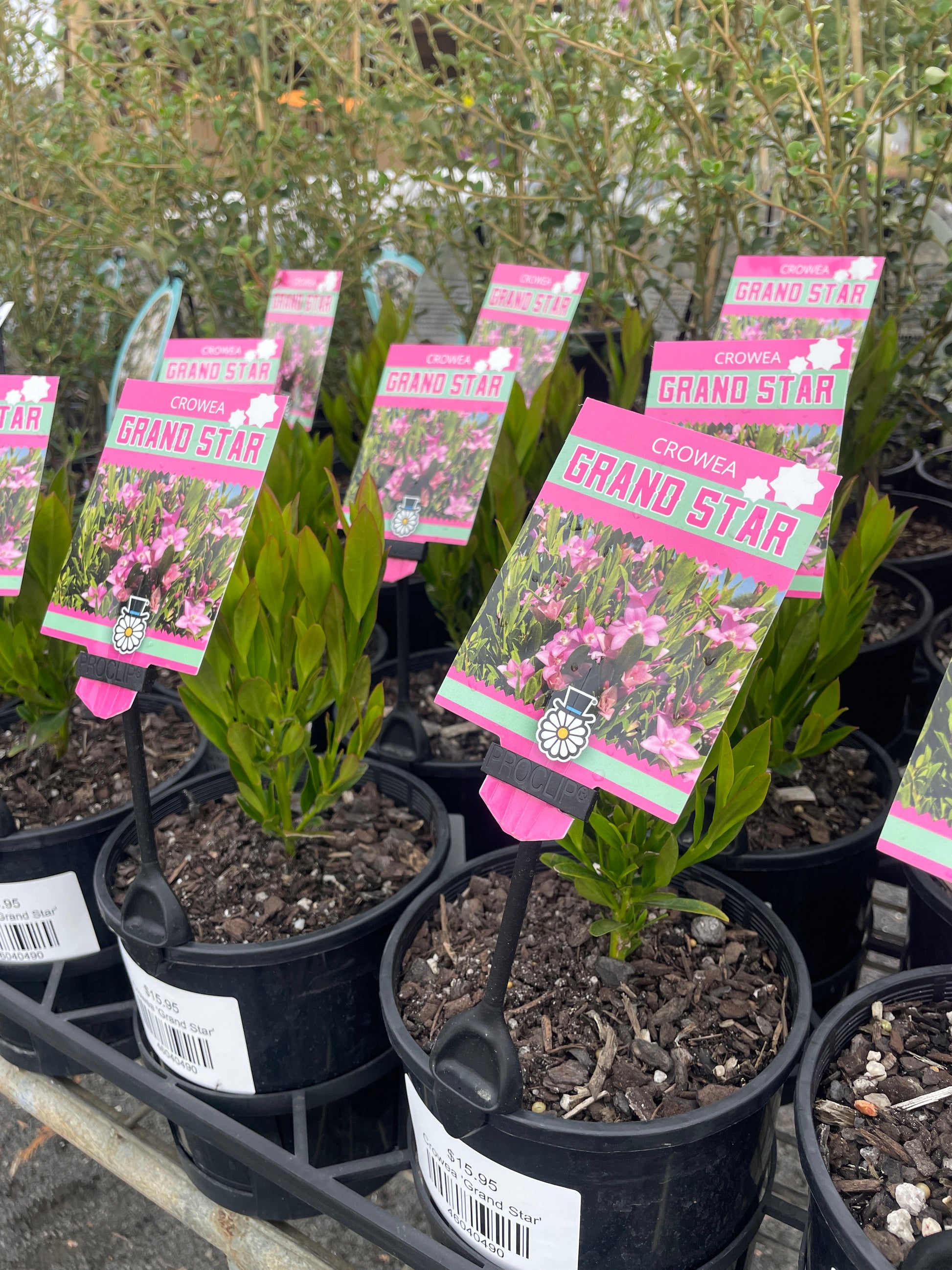 Crowea 'Grand Star' is a stunning Australian native shrub featuring large pink star-shaped flowers that cover the plant from autumn through spring. This compact evergreen has fine aromatic foliage and produces masses of showy blooms, providing long-lasting colour when many other plants are dormant.