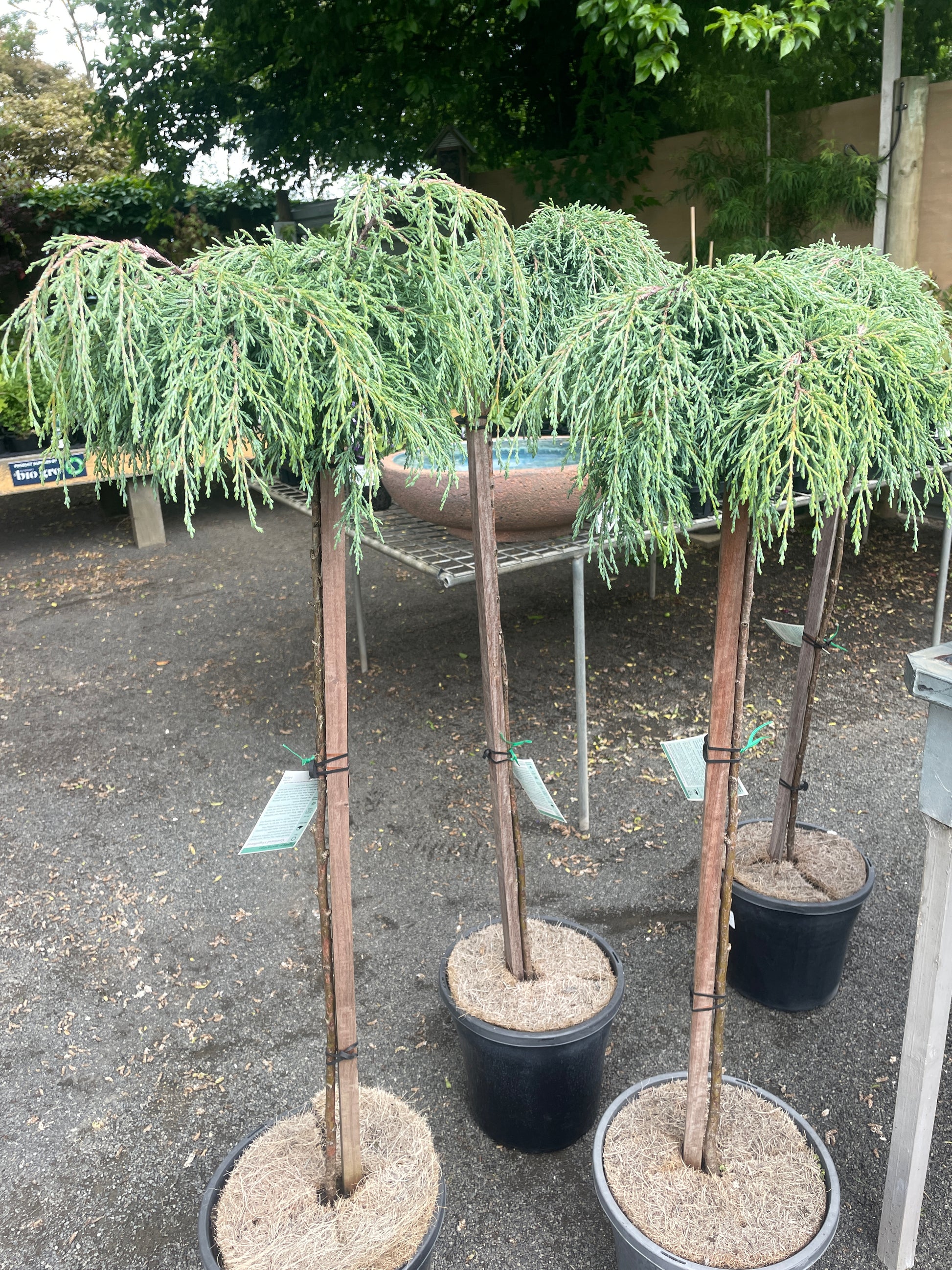 The Cupressus macrocarpa 'Greenstead Magnifica' is an exceptional standard-form conifer featuring dense, rich green foliage with a magnificent upright habit. This professionally trained standard specimen in a 250mm pot offers excellent value for creating formal structure and year-round interest in your garden.