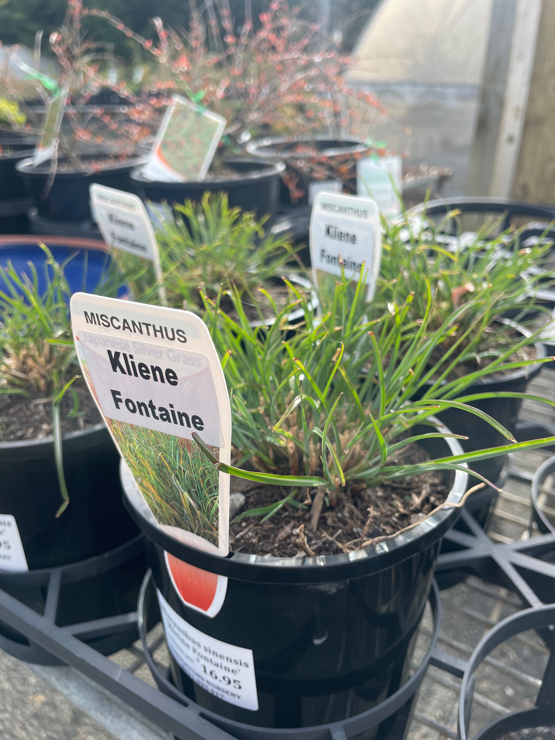Miscanthus sinensis 'Kleine Fontaine' (Little Fountain Maiden Grass) is a compact, clump-forming ornamental grass admired for its narrow, silvery-green foliage with a distinctive white midrib. Known as 'Little Fountain' due to its elegant, fountain-like growth habit, it reaches a manageable height of approximately 1.05 to 1.45 meters (3.5 to 4.5 feet) with a spread of 0.6 to 0.9 meters (2 to 3 feet), making it an excellent choice for smaller gardens and borders.