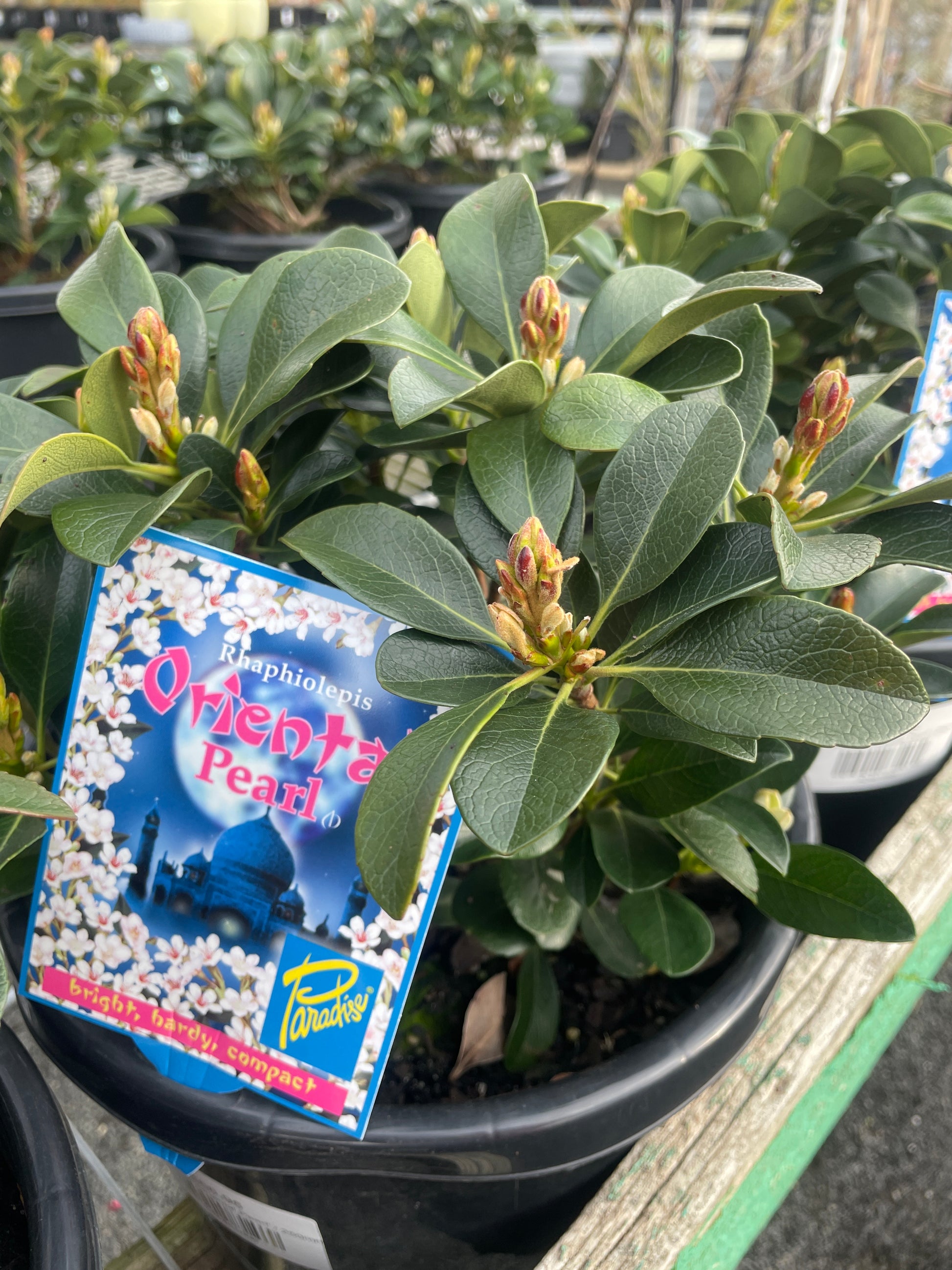 Oriental Pearl Rhaphiolepis is a stunning evergreen shrub perfect for cold climate gardens around Ballarat. This compact, hardy variety produces masses of fragrant white flowers in spring, followed by attractive blue-black berries.